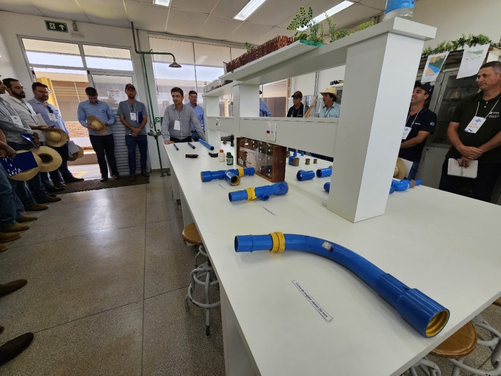 Durante o curso, os participantes realizam práticas de campo voltadas ao planejamento de sistemas irrigados, incluindo visitação ao campo de demonstração, medição de vazão, análise de tubulações, peças e conexões. No período da tarde, o treinamento aborda definição de talhões, dimensionamento de tubulações e escolha da motobomba — etapas fundamentais para projetos eficientes.
