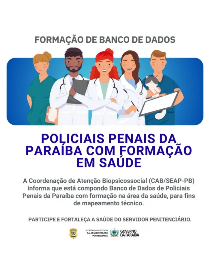 Paraíba Coordenação de Atenção Biopsicossocial organiza banco de dados de policiais penais com formação na área da saúde