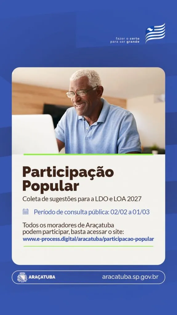 Araçatuba - SP Prefeitura de Araçatuba reforça que prazo para participação popular no orçamento está chegando ao fim
