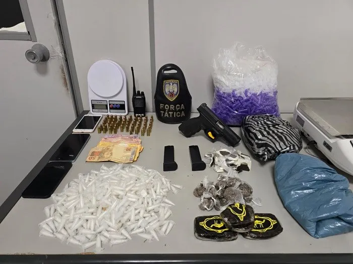 No interior do imóvel, foram apreendidos um revólver calibre .38, uma espingarda, um simulacro de arma de fogo, munições de diversos calibres, rádios comunicadores, além de significativa quantidade de entorpecentes, incluindo maconha, crack, cocaína e 440 comprimidos de ecstasy. Também foram apreendidos R$ 4.896,00 em espécie.